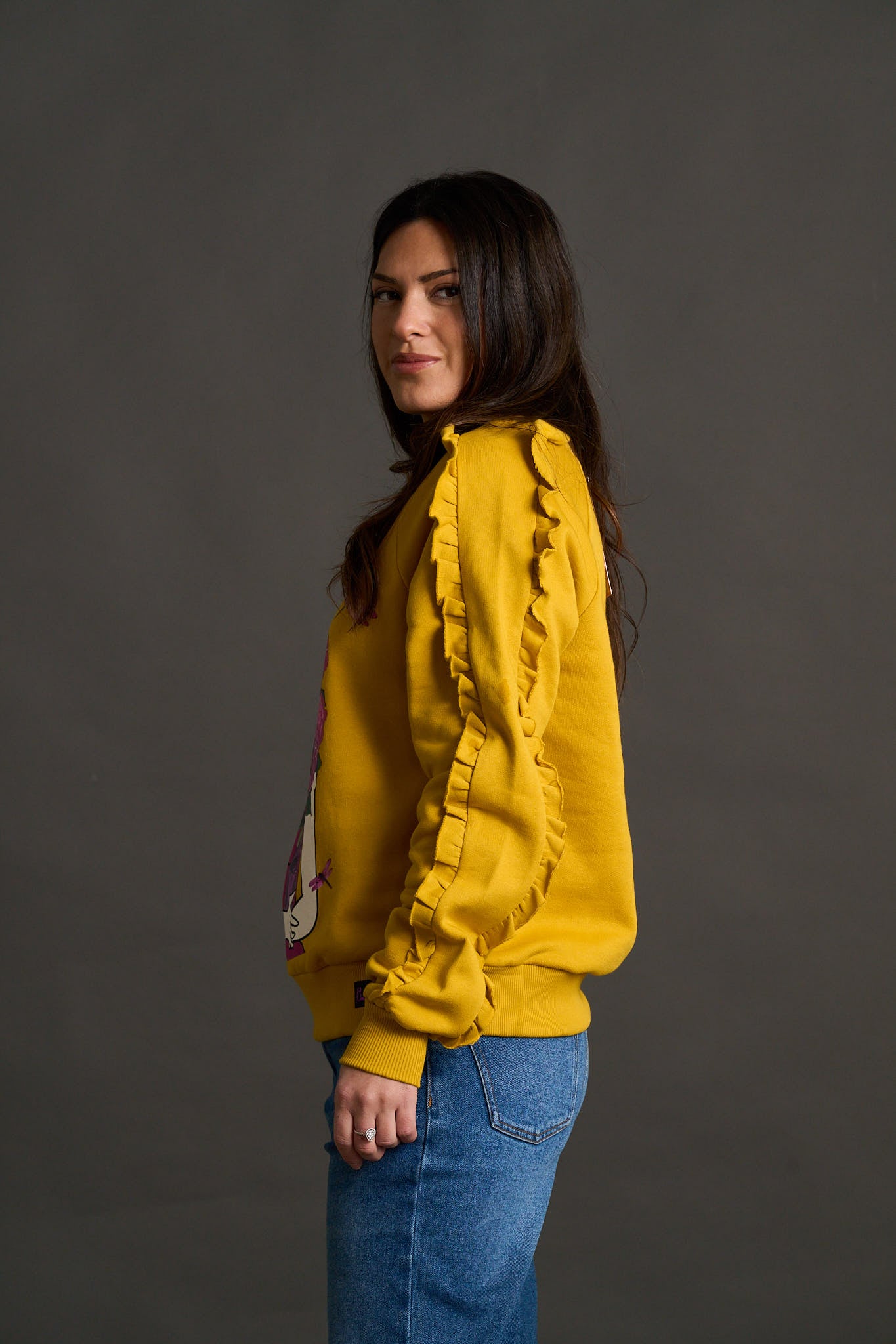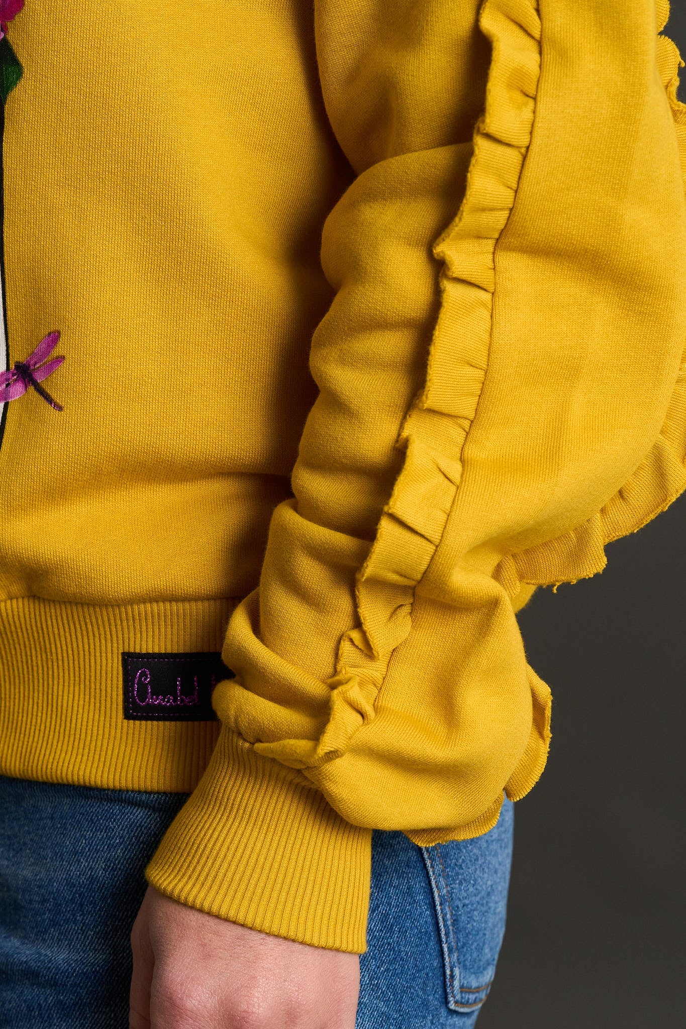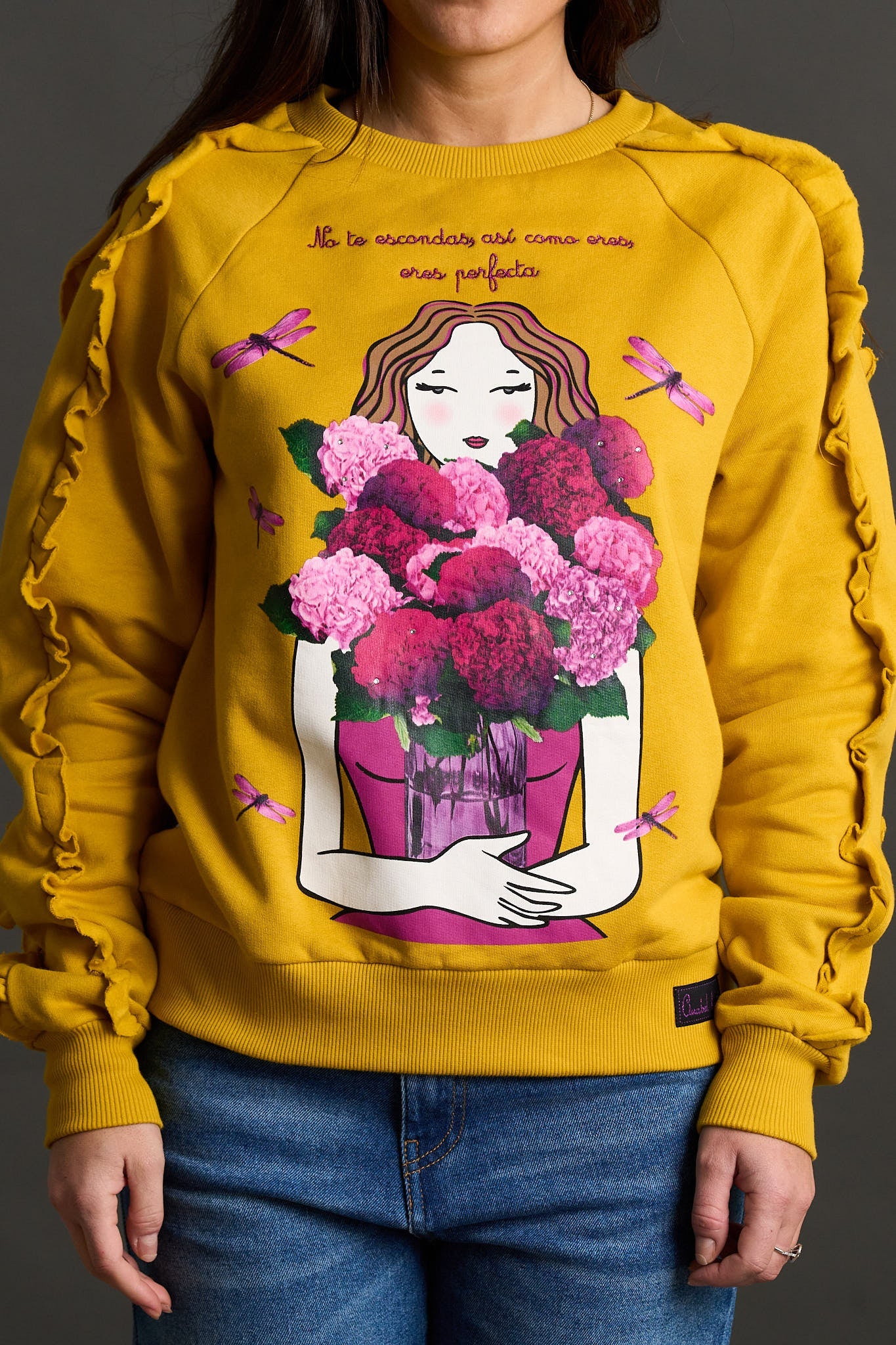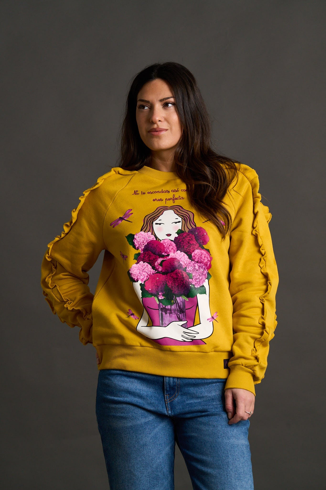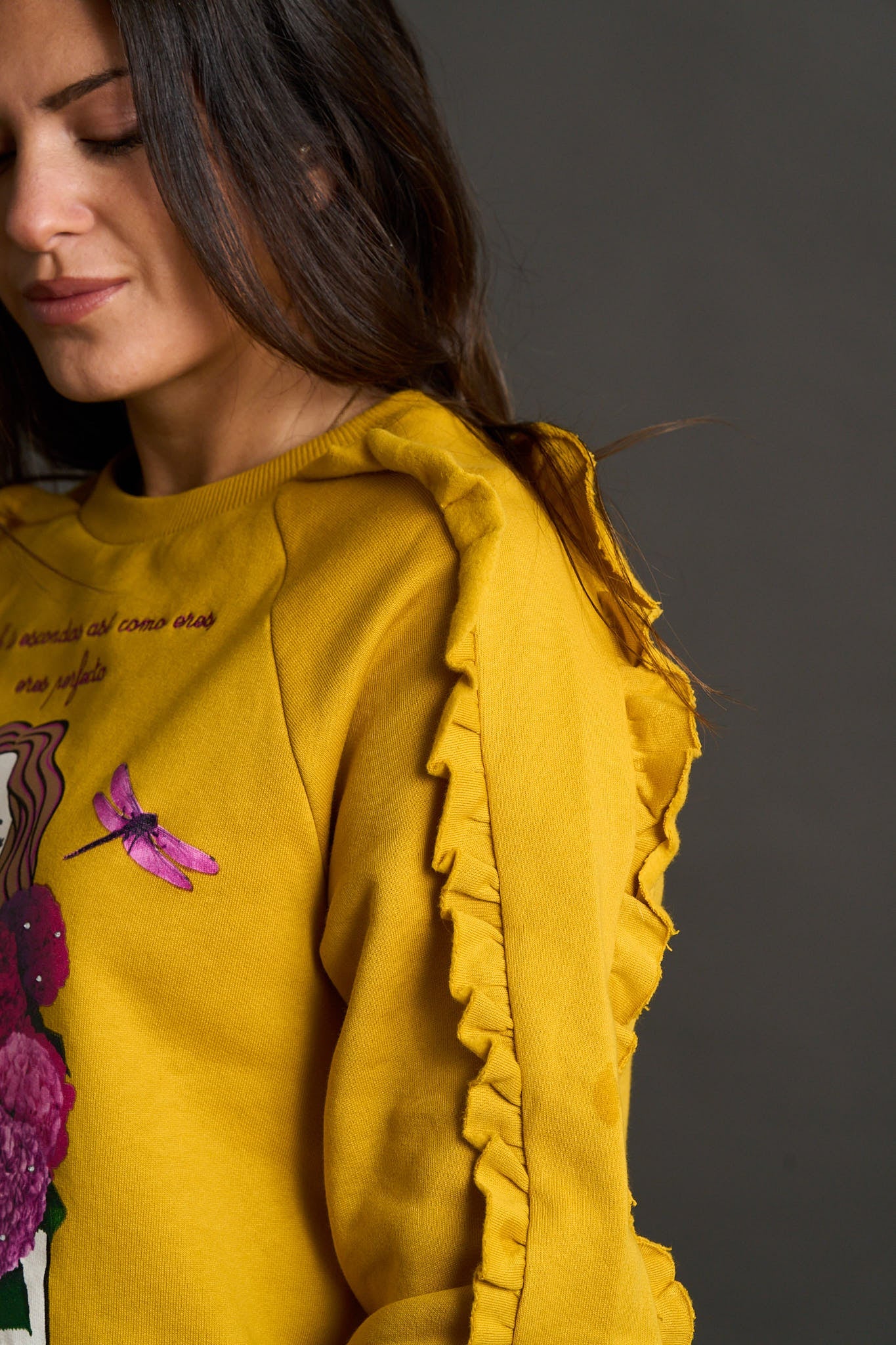 -Manga raglán, con detalle de pequeños volantes incrustados.