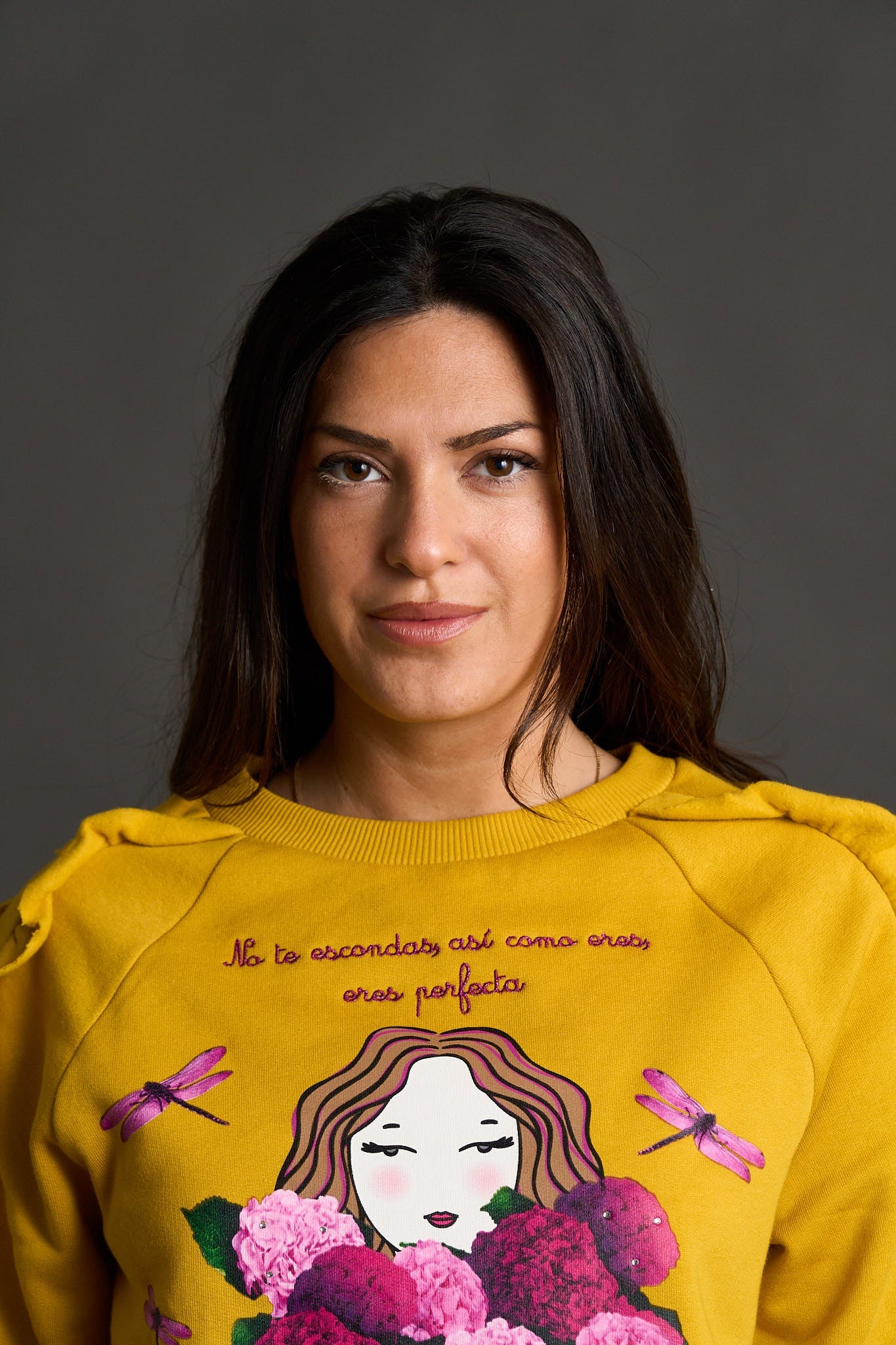 Sofia mide 1,72cm y lleva la talla XS. Tatiana mide 1,75cm y lleva la talla XXL.