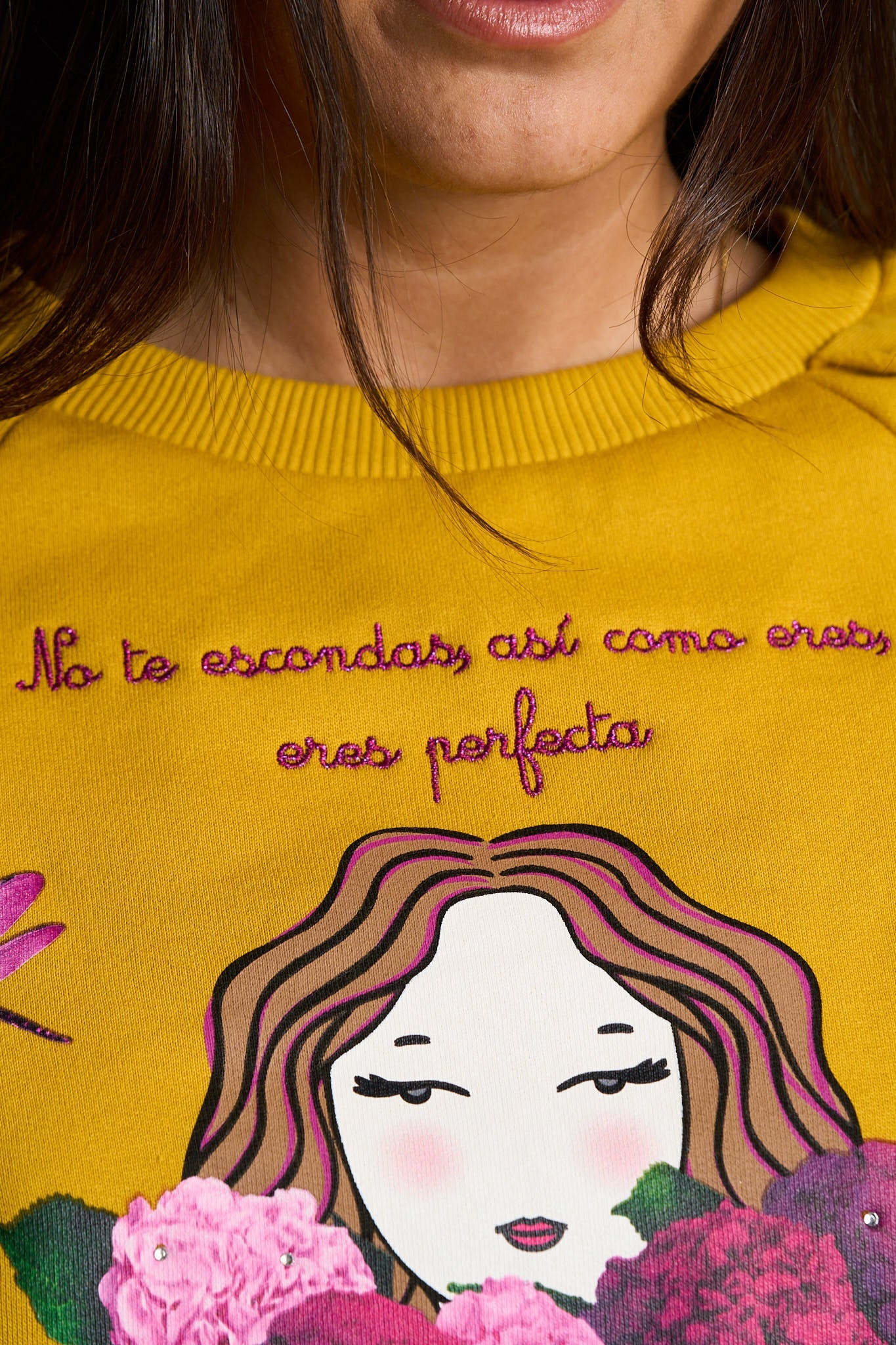 -Maxi print delantero con detalle de strass de piedras sobre la ilustración.