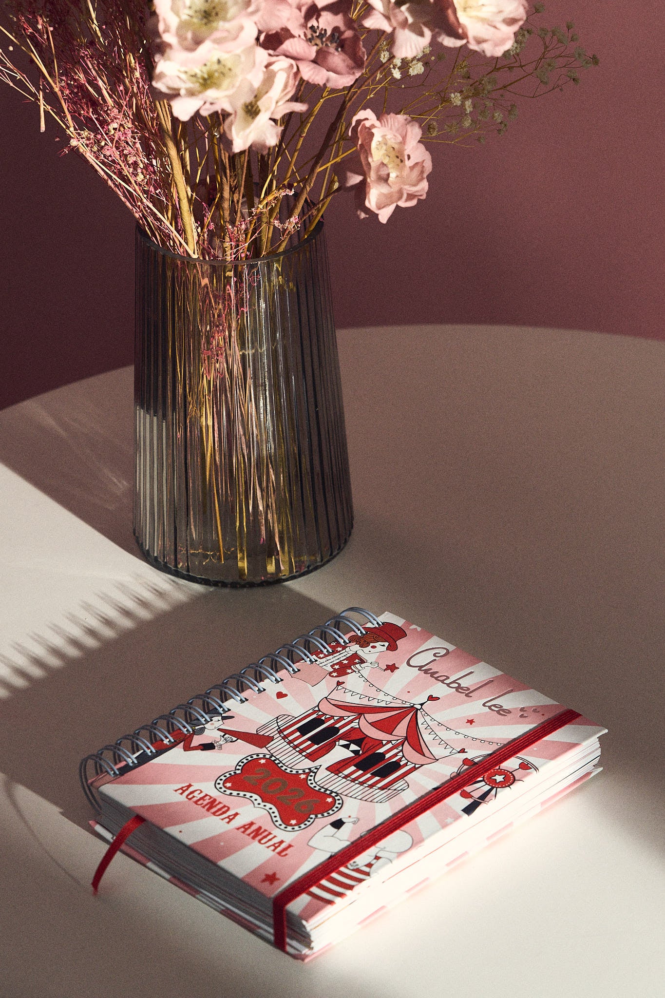 Agenda 2026 con ilustraciones en la temática de CIRCO y mensajes positivos.
