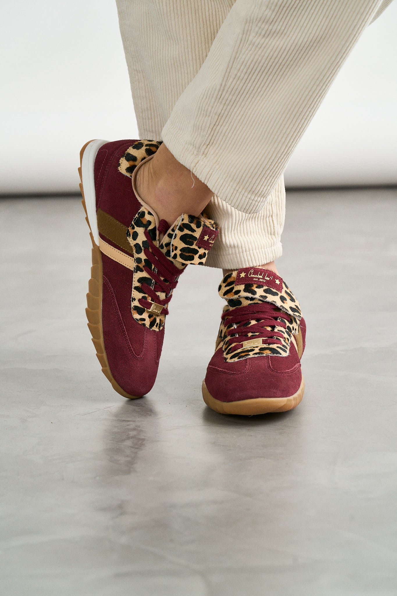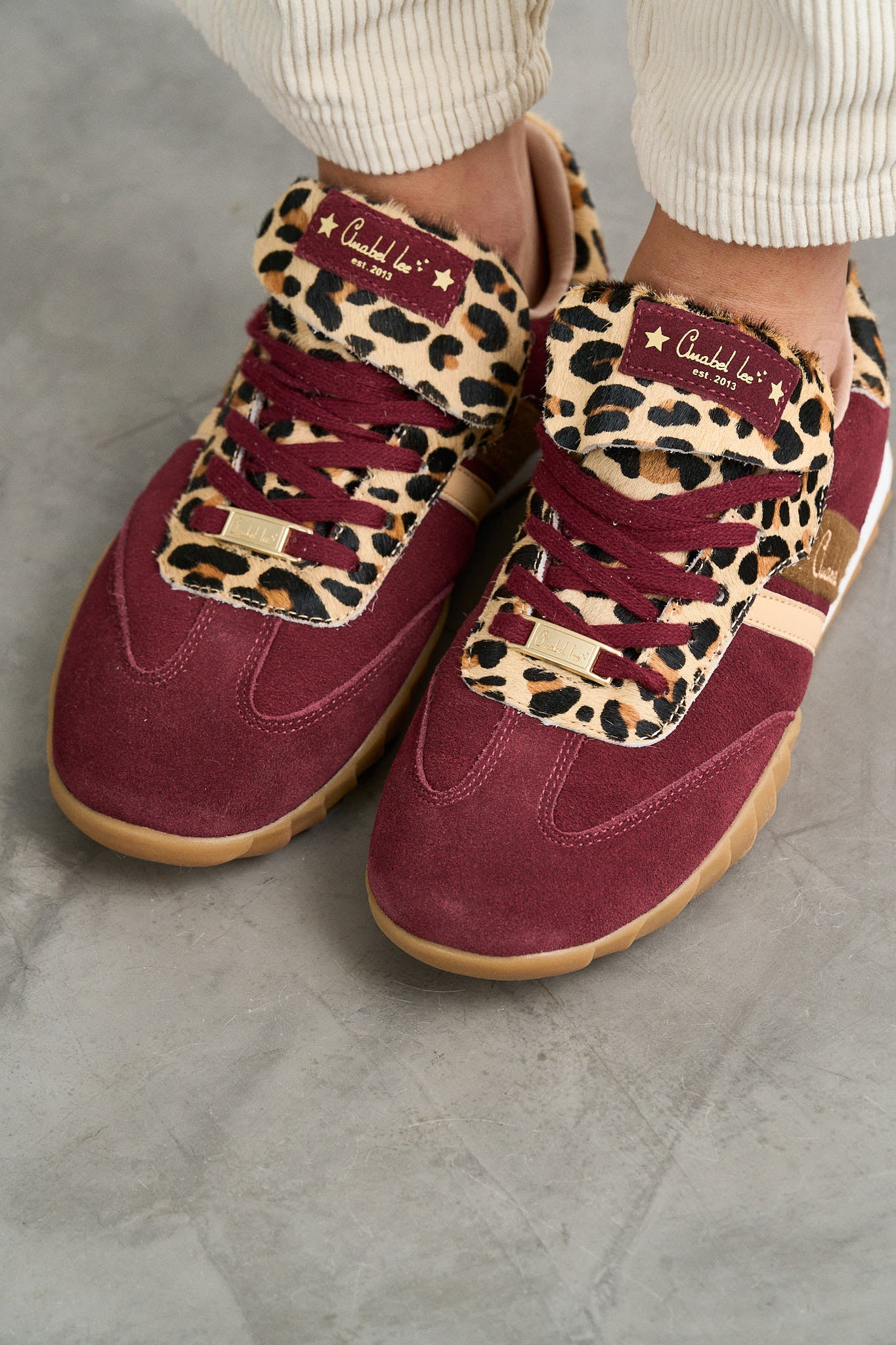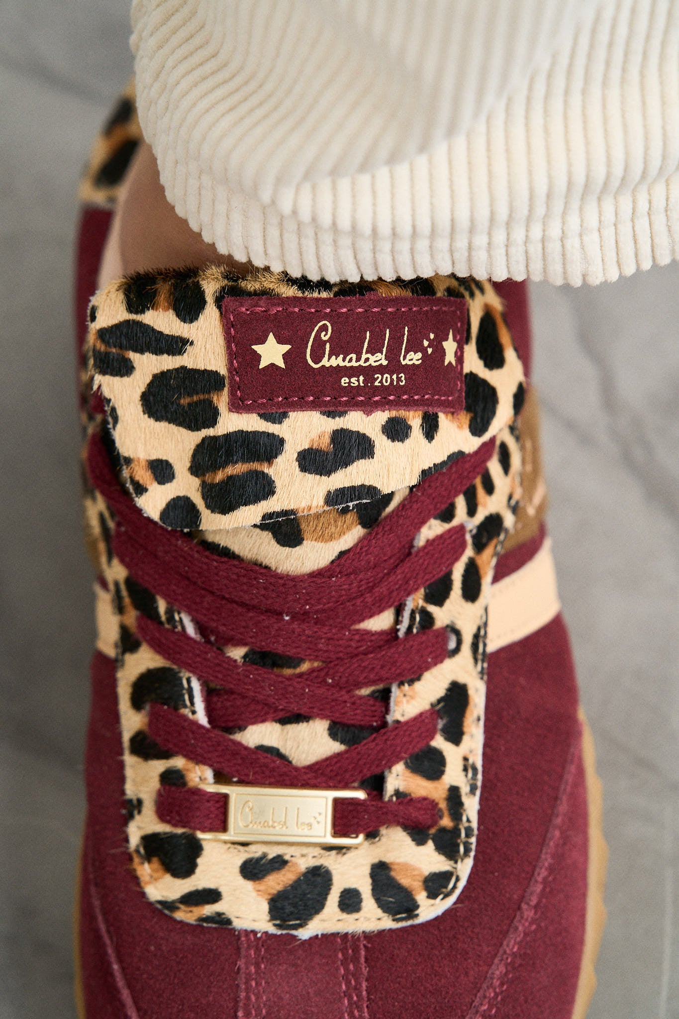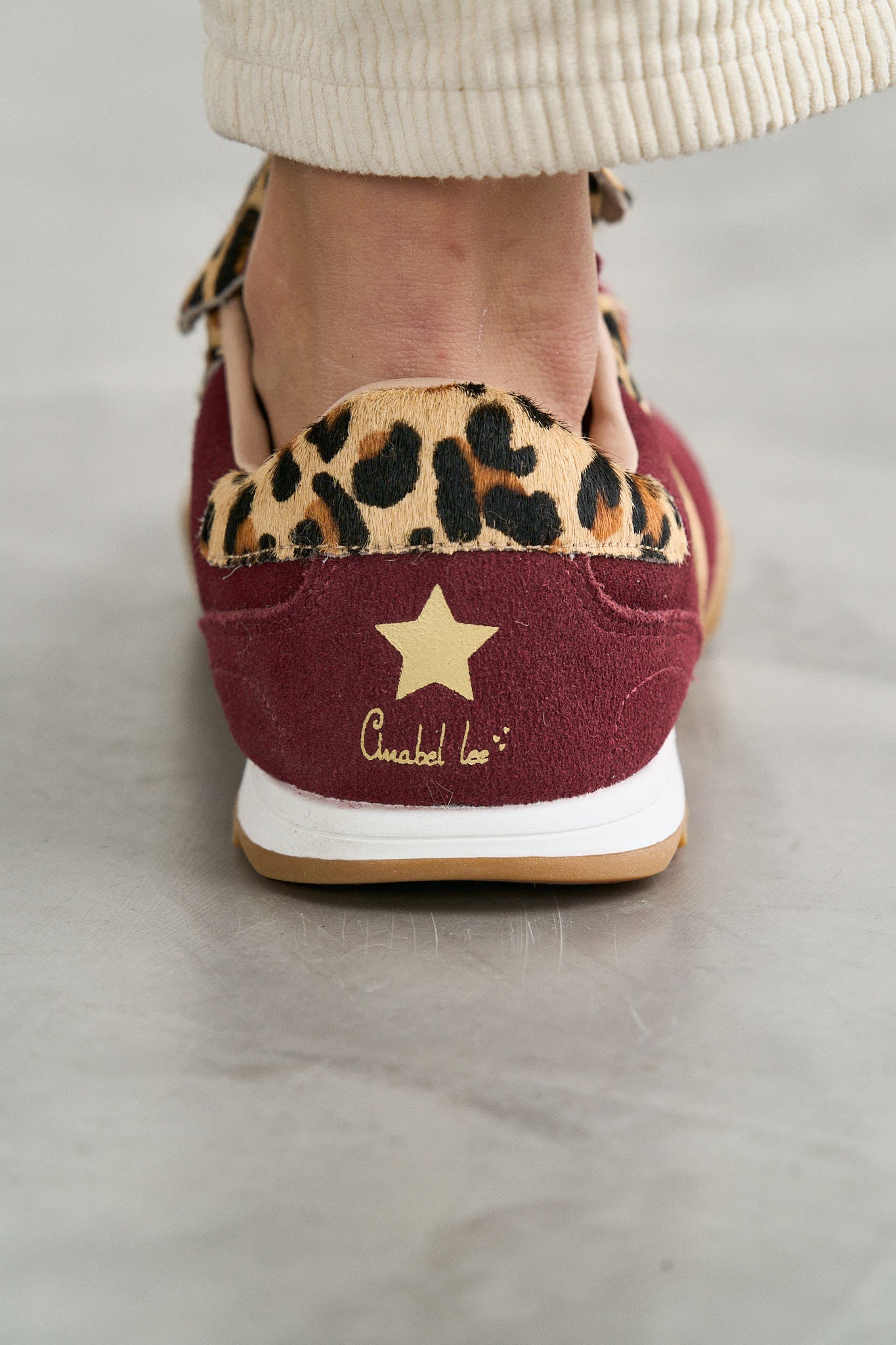-Zapatilla de color burdeos con detalles en animal print by Anabel Lee.