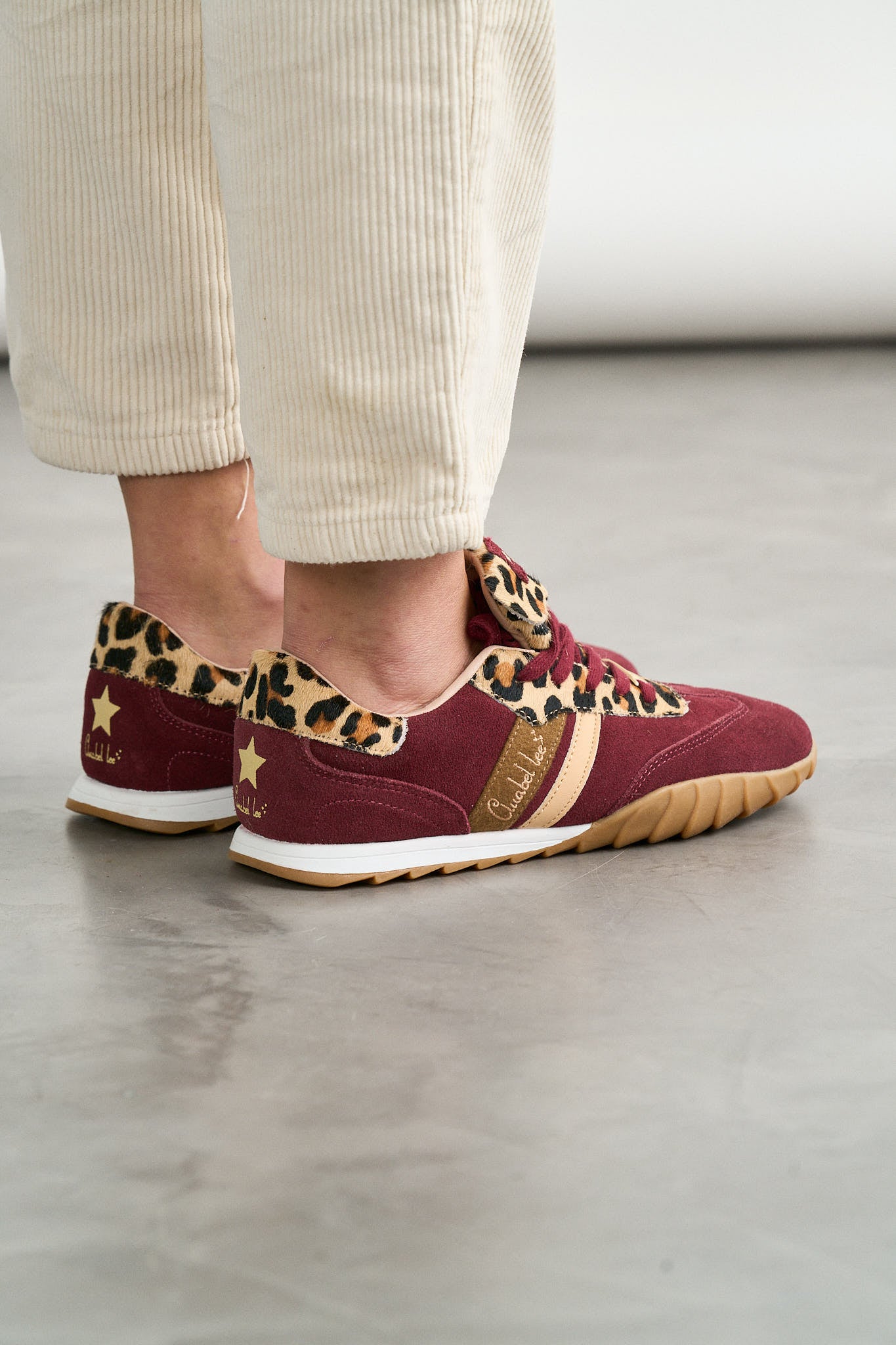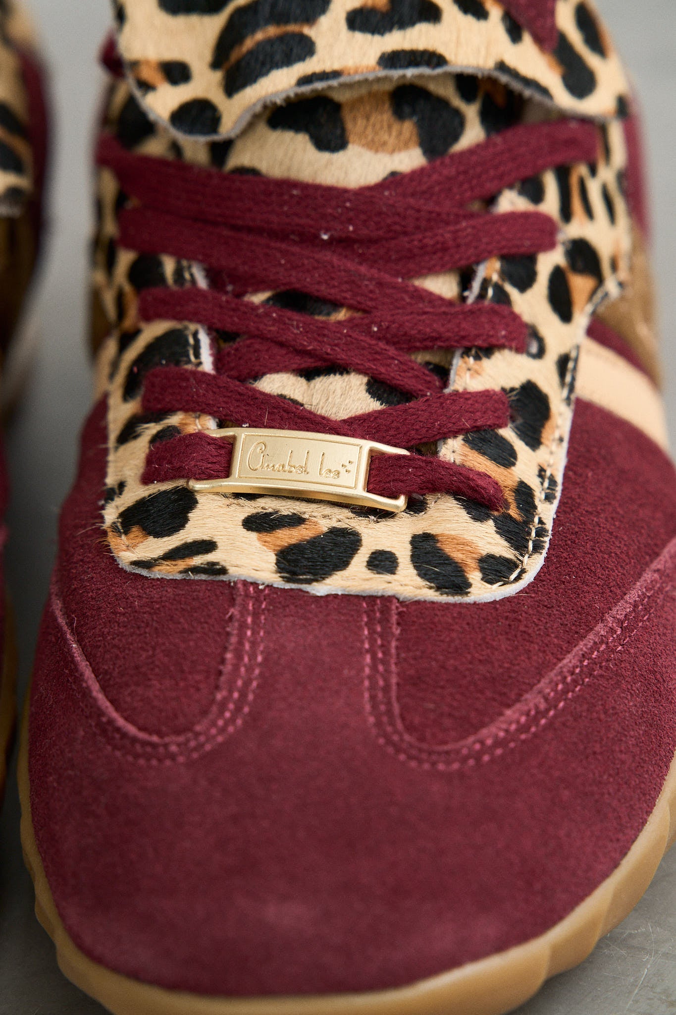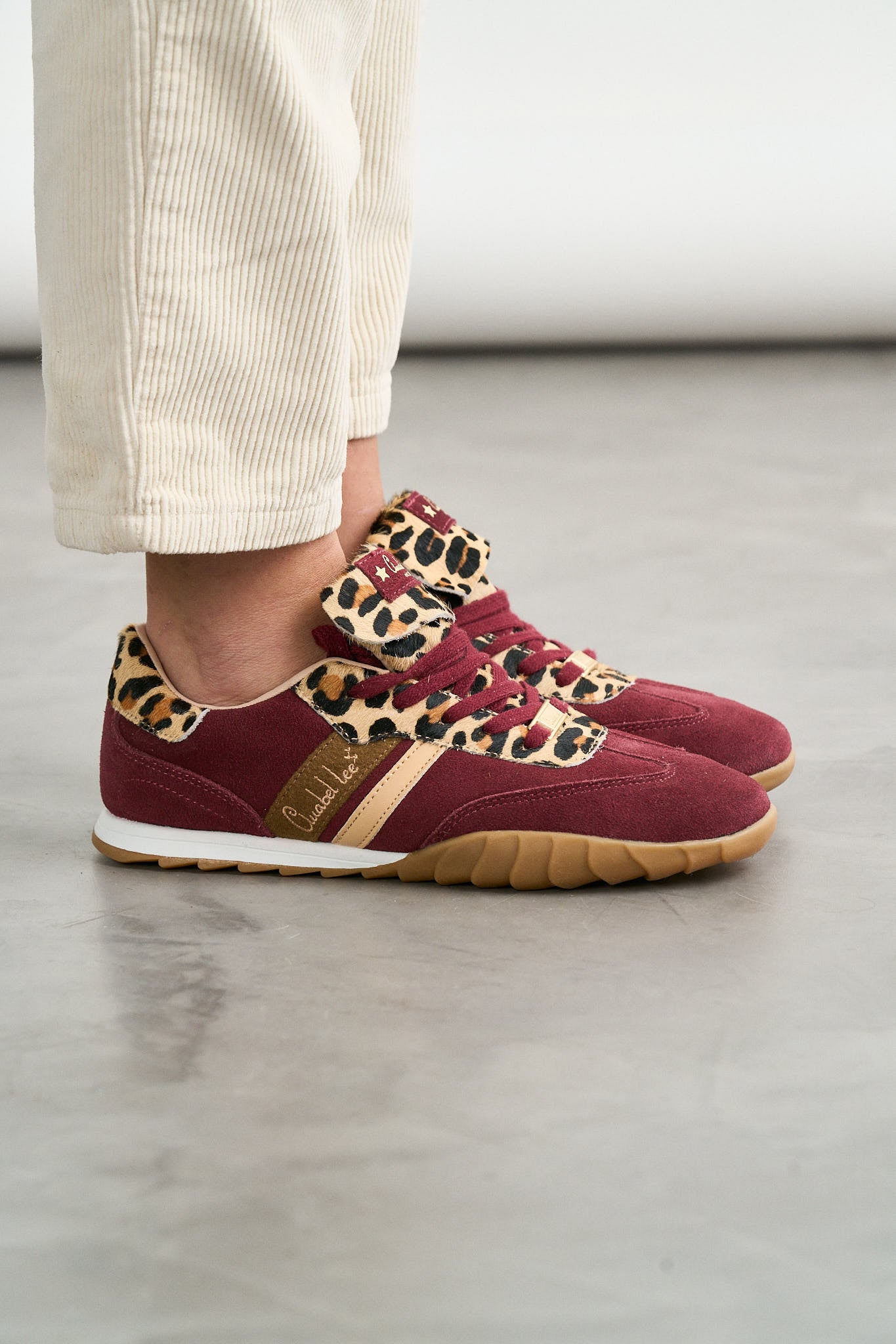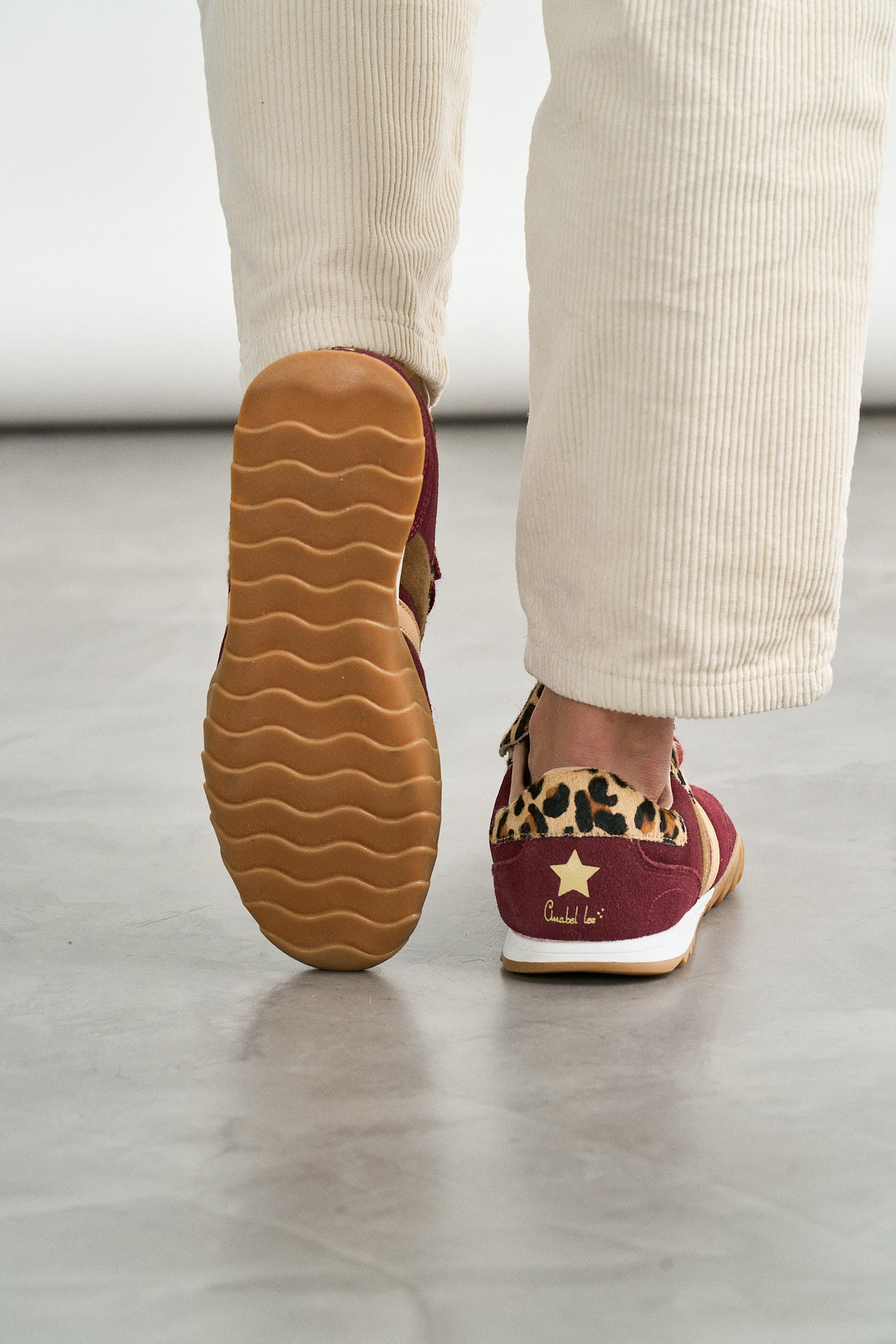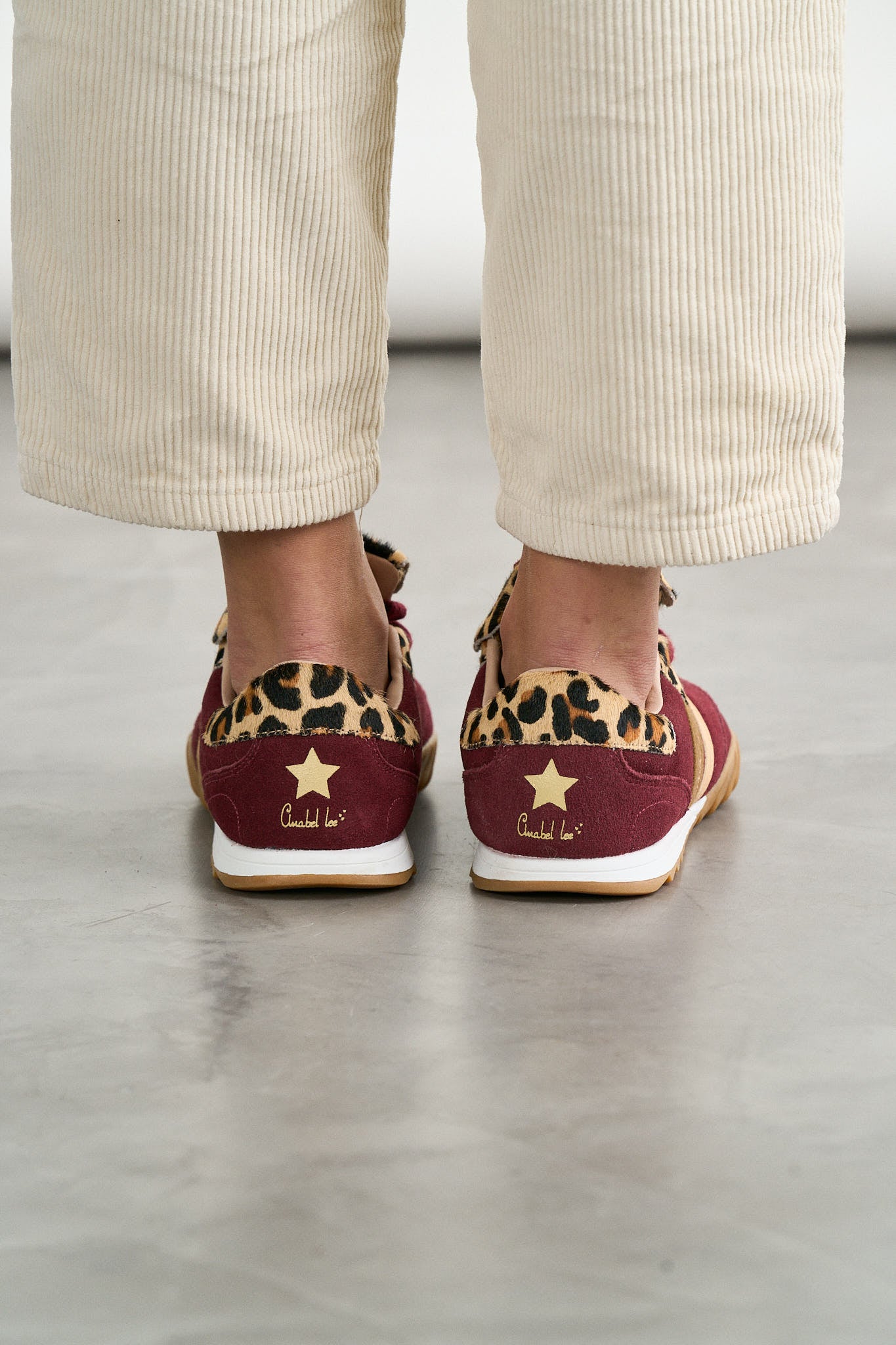 -Zapatilla de color burdeos con detalles en animal print by Anabel Lee.
