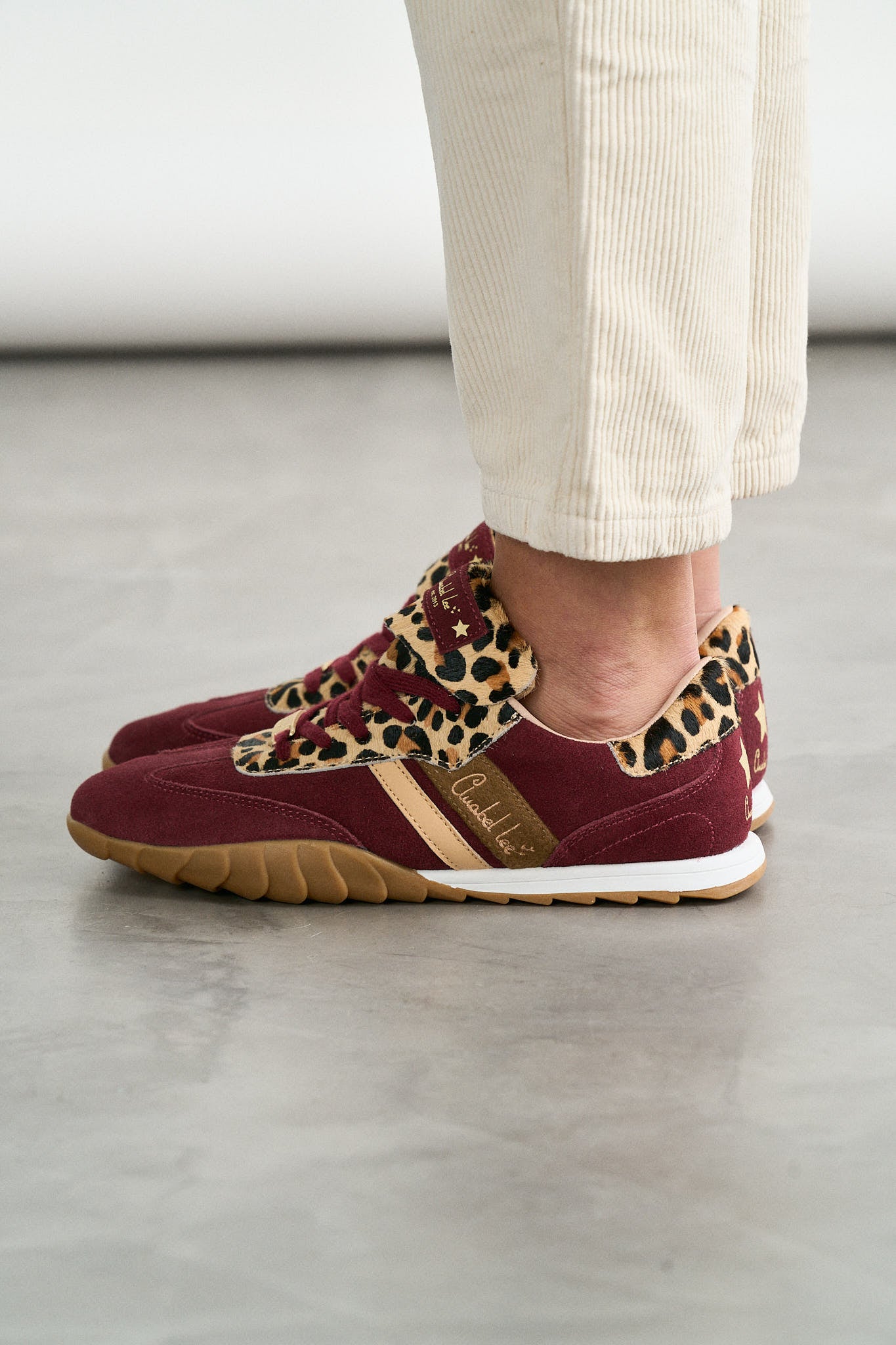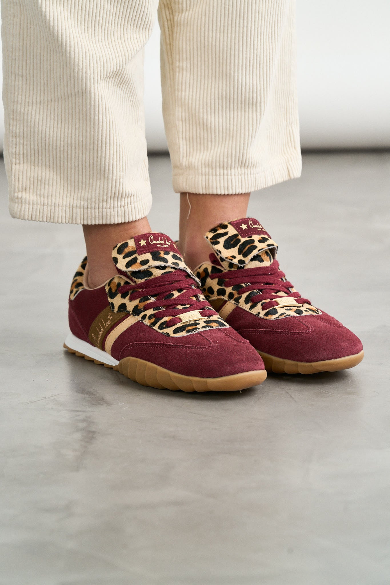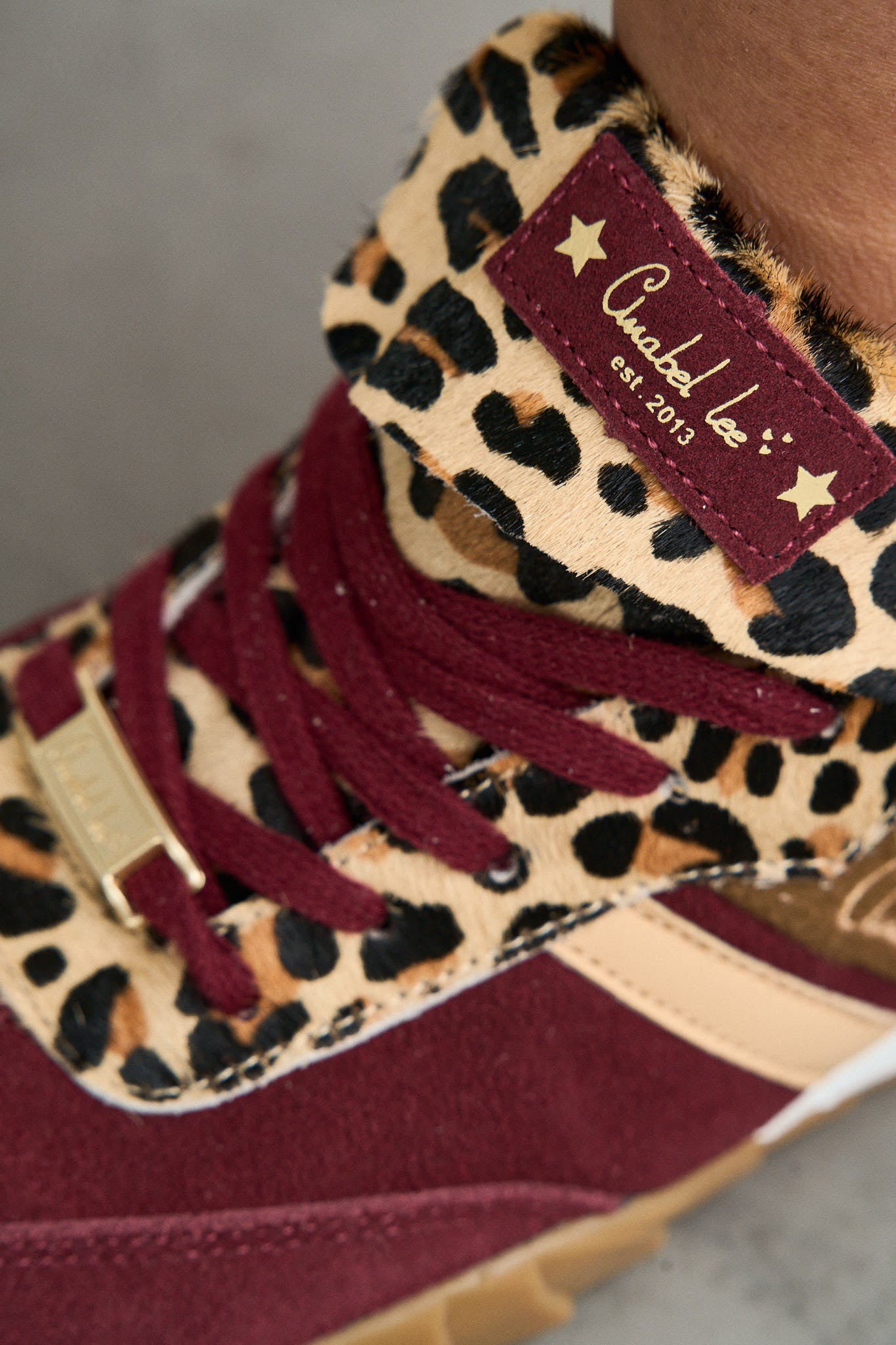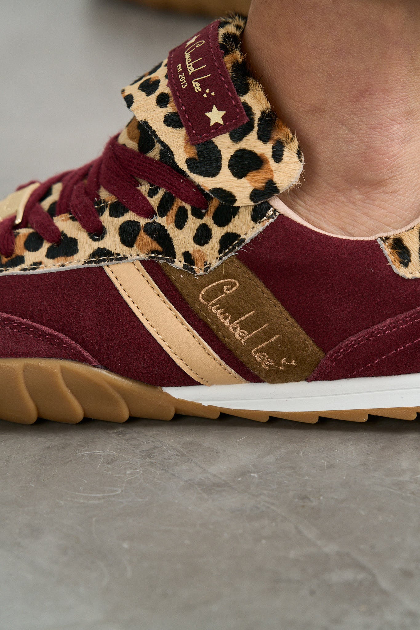 -Zapatilla de color burdeos con detalles en animal print by Anabel Lee.