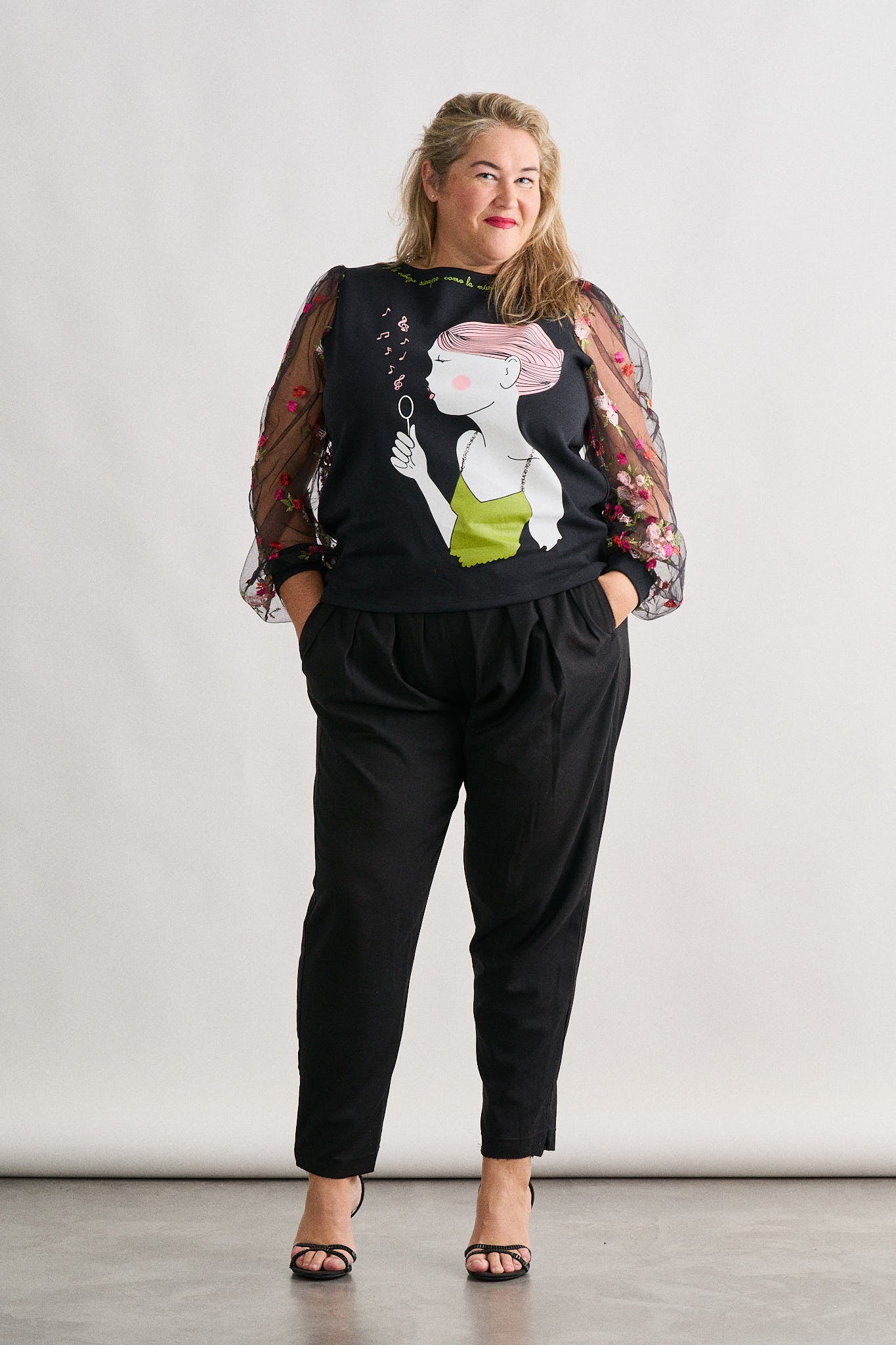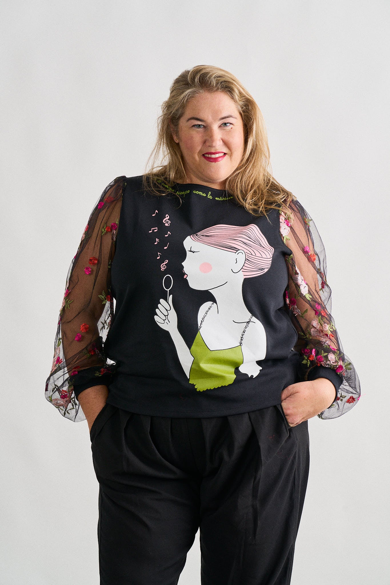 Romina mide 1,80cm y lleva la talla S. Tatiana mide 1,75cm y lleva la talla XXL.